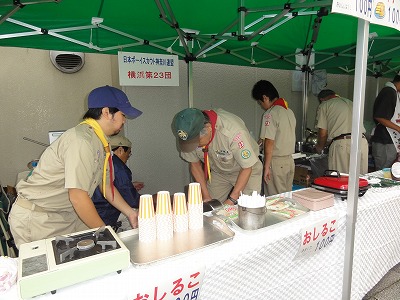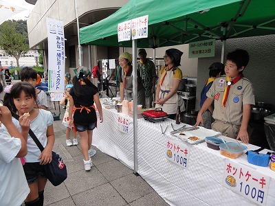 ホットケーキを焼いたり、お金を受け取ったり、スカウト達も大活躍!